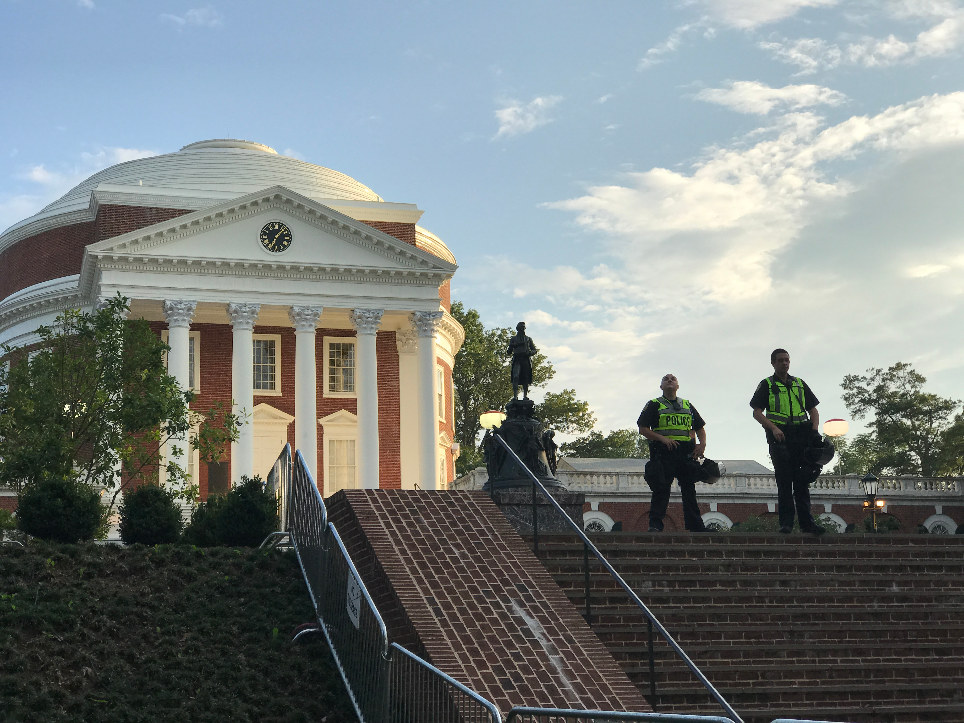 At 10:07 p.m. a local police officer witnessed from a distance white supremacists encircling the Rotunda. He asked again if the university needed assistance and was told “no.”
