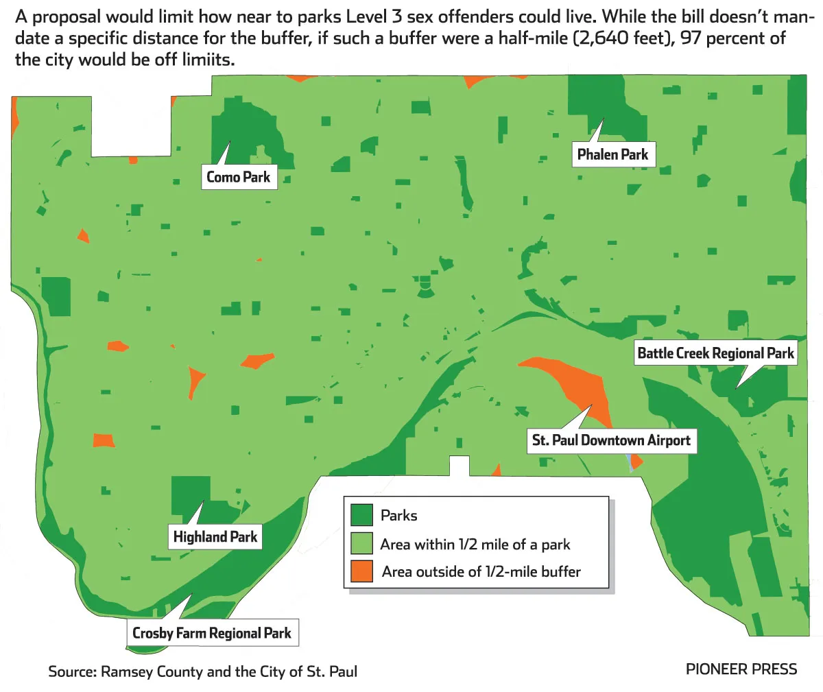 But in places like St. Paul — with a dense concentration of parks — that’s largely what the language would do.